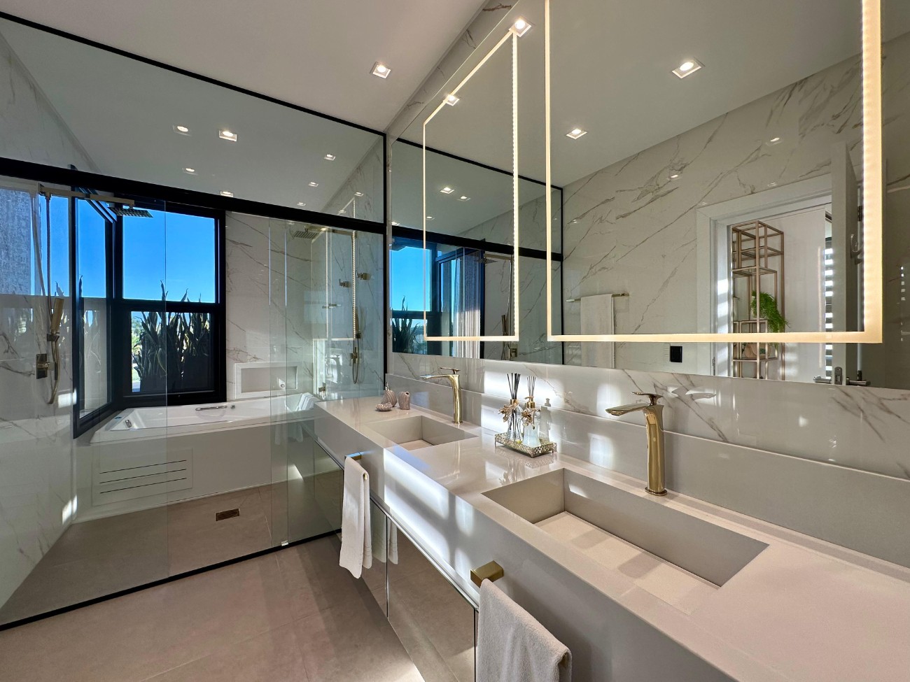 Toda a residência é amplamente automatizada, com controle via smartphone e assistente virtual Alexa.